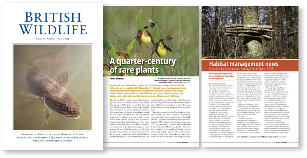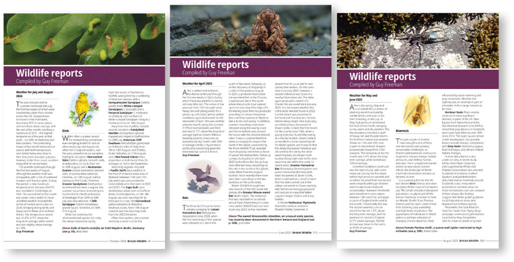 As we conclude the 36th volume of British Wildlife, we look back on the last 12 months of coverage, commentaries and discoveries from the natural world. And, with a host of exciting articles and contributors lined up, we look forward to the year ahead.