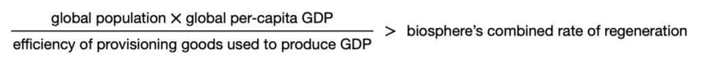Dasgupta proceeds to outline the sheer decline the natural world has experienced over the last two centuries, like a quarter of our tropical forests facing our collective chainsaw since the first Convention on Biological Diversity in Rio, back in 1992. This is put down to a poorly weighted Impact Inequality — the idea that total ecological overreach can be measured by the following equation: